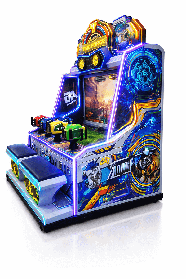 Το Time Force είναι ένα εντυπωσιακό μηχάνημα arcade με δυνατότητα τετραπλού παιχνιδιού, σχεδιασμένο για να προσφέρει μια συναρπαστική εμπειρία διασκέδασης. Με προηγμένα γραφικά, ρεαλιστικά εφέ και εντυπωσιακό φωτισμό LED, το Time Force προσελκύει παίκτες κάθε ηλικίας. Η καμπίνα του διαθέτει τέσσερις θέσεις, επιτρέποντας σε έως και τέσσερις παίκτες να απολαύσουν την εμπειρία ταυτόχρονα, δημιουργώντας έναν ιδανικό χώρο για ομαδική ψυχαγωγία σε εμπορικά κέντρα και αίθουσες παιχνιδιών.