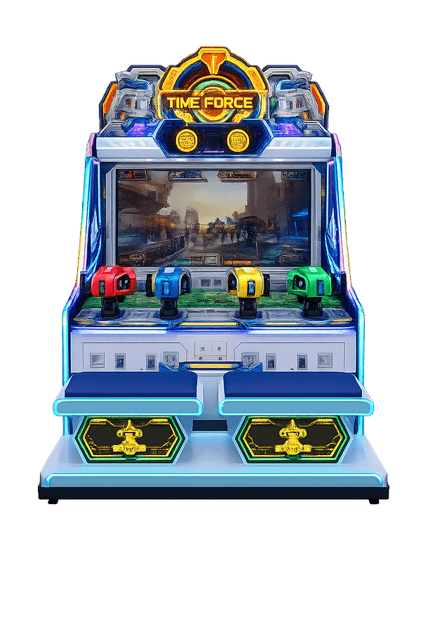 Το Time Force είναι ένα εντυπωσιακό μηχάνημα arcade με δυνατότητα τετραπλού παιχνιδιού, σχεδιασμένο για να προσφέρει μια συναρπαστική εμπειρία διασκέδασης. Με προηγμένα γραφικά, ρεαλιστικά εφέ και εντυπωσιακό φωτισμό LED, το Time Force προσελκύει παίκτες κάθε ηλικίας. Η καμπίνα του διαθέτει τέσσερις θέσεις, επιτρέποντας σε έως και τέσσερις παίκτες να απολαύσουν την εμπειρία ταυτόχρονα, δημιουργώντας έναν ιδανικό χώρο για ομαδική ψυχαγωγία σε εμπορικά κέντρα και αίθουσες παιχνιδιών.
